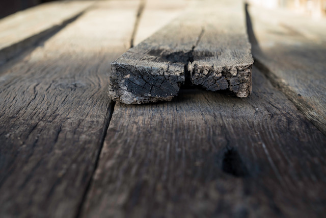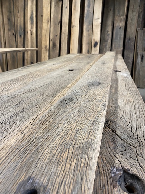 Een wagon komt aan bij een professionele sloper die met liefde voor het materiaal de bruikbare planken er zorgvuldig uithaalt. Als er een mooi pakket planken samengesteld is komen ze vanuit Frankrijk bij Jules Woods in de werkplaats aan, daar begint ons klusje. Het hout is op dat moment nog vies en niet direct bruikbaar. We hebben verschillende manieren om het hout op de juiste manier te bewerken. Eiken wagonplanken geborsteld wil zeggen dat we ze schoonmaken en borstelen, hierbij blijft de plank een ruige uitstraling houden.
