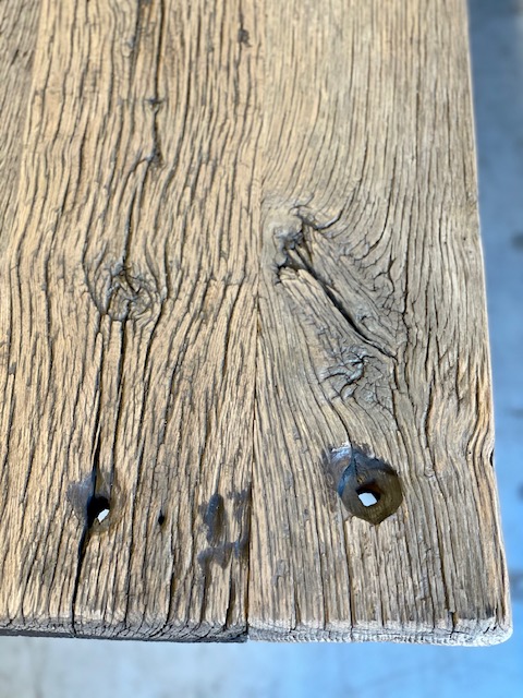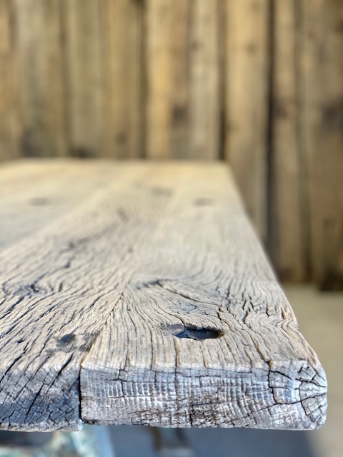 Een ‘schram’ is nog duidelijk zichtbaar en die laten we ook graag zitten. Dit zien wij bij Jules Woods niet als schade, maar als een litteken van het rijke verleden van de plank.