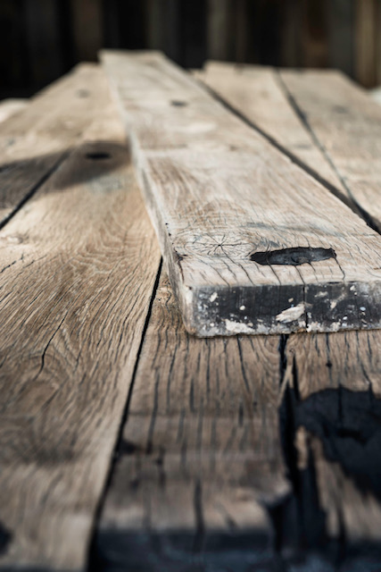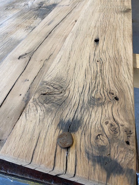 Een wagon komt aan bij een professionele sloper die met liefde voor het materiaal de bruikbare planken er zorgvuldig uithaalt. Als er een mooi pakket planken samengesteld is komen ze vanuit Frankrijk bij Jules Woods in de werkplaats aan, daar begint ons klusje.